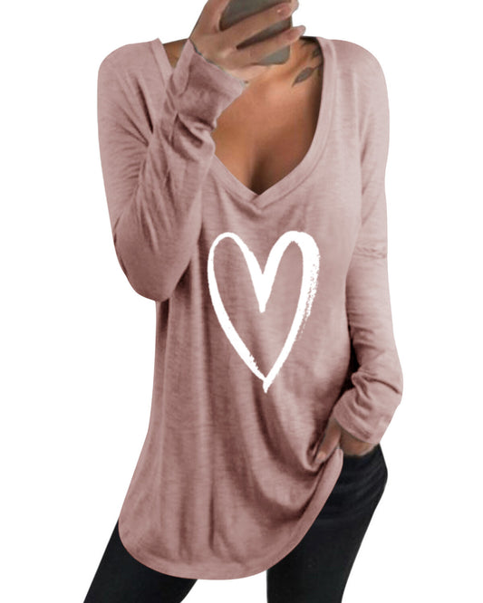 Casual Loose Love V Neck Long Sleeves T-shirts