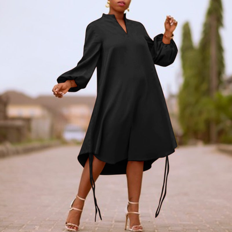 Número de modelo: Vestido hasta la rodilla con manga larga tipo farol de otoño