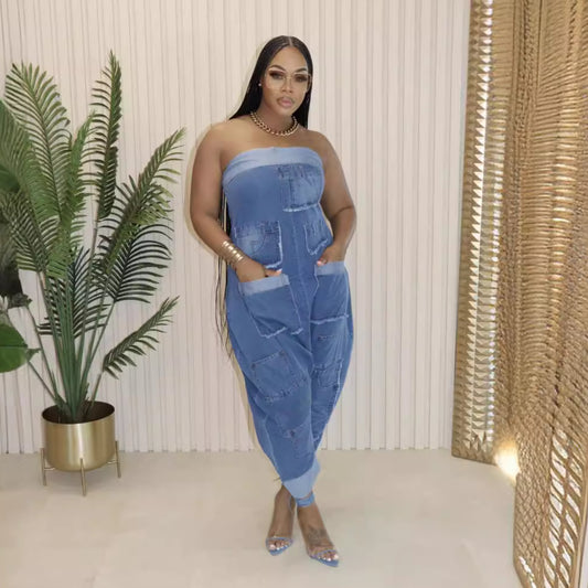 New Sexy Fashion Suspender Stitching Casual Jumpsuit