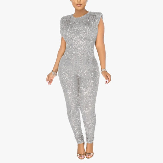 High Waist Sequined Sleeveless Jumpsuits