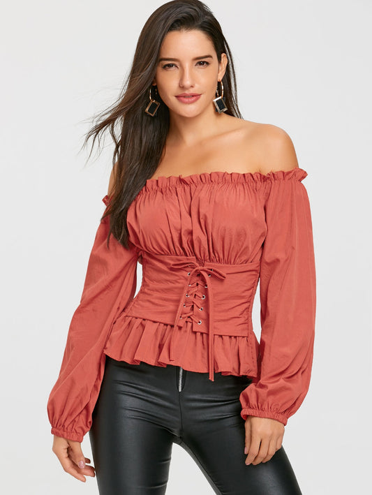 Plaid Trim Buttoned Up Long Sleeve Blouse