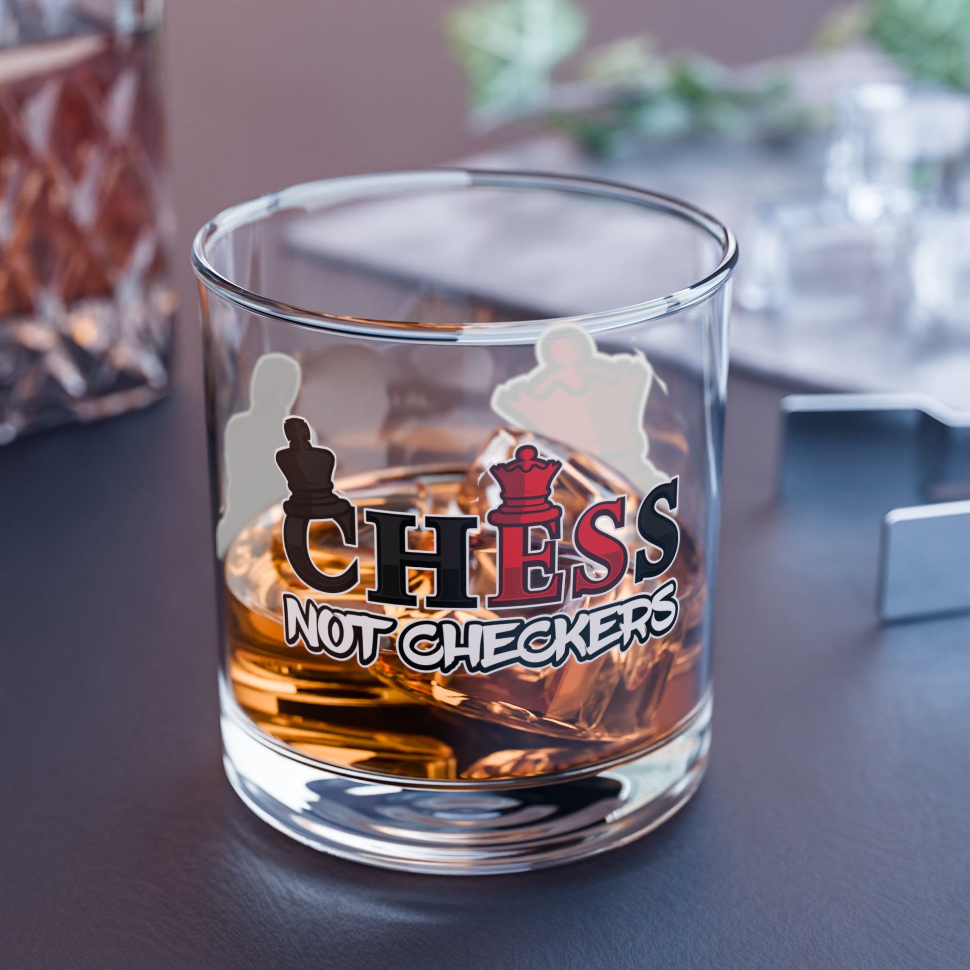 Upgrade your drink game with this 10oz Rocks Glass. Perfect for sipping your favorite beverage while thinking a few moves ahead (Chess not Checkers) and adding a touch of sophistication to your barware. Checkmate!