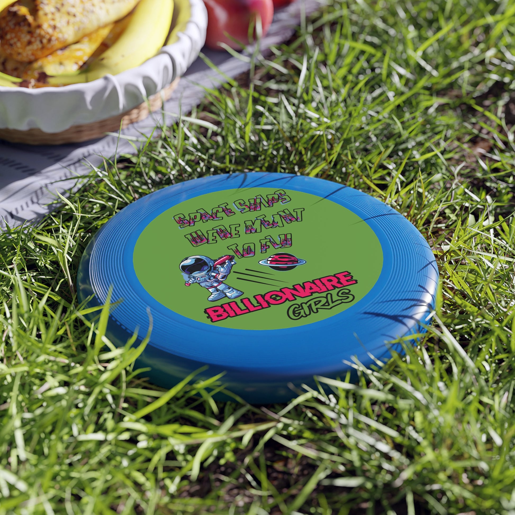 Bring some fun and energy to your outdoor activities with this colorful frisbee featuring the slogan Spaceships Were Meant To Fly'. Perfect for frisbee enthusiasts, beachgoers, and anyone looking to add a playful touch to their outings. Great for summer picnics, beach days, and outdoor celebrations.